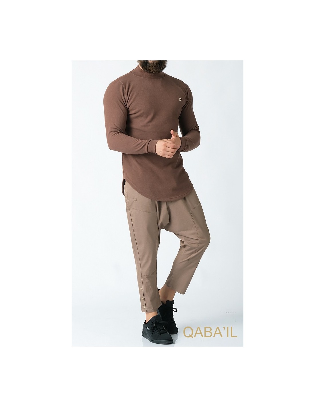 Pull Col Montant Marron Taupe - Qaba'il